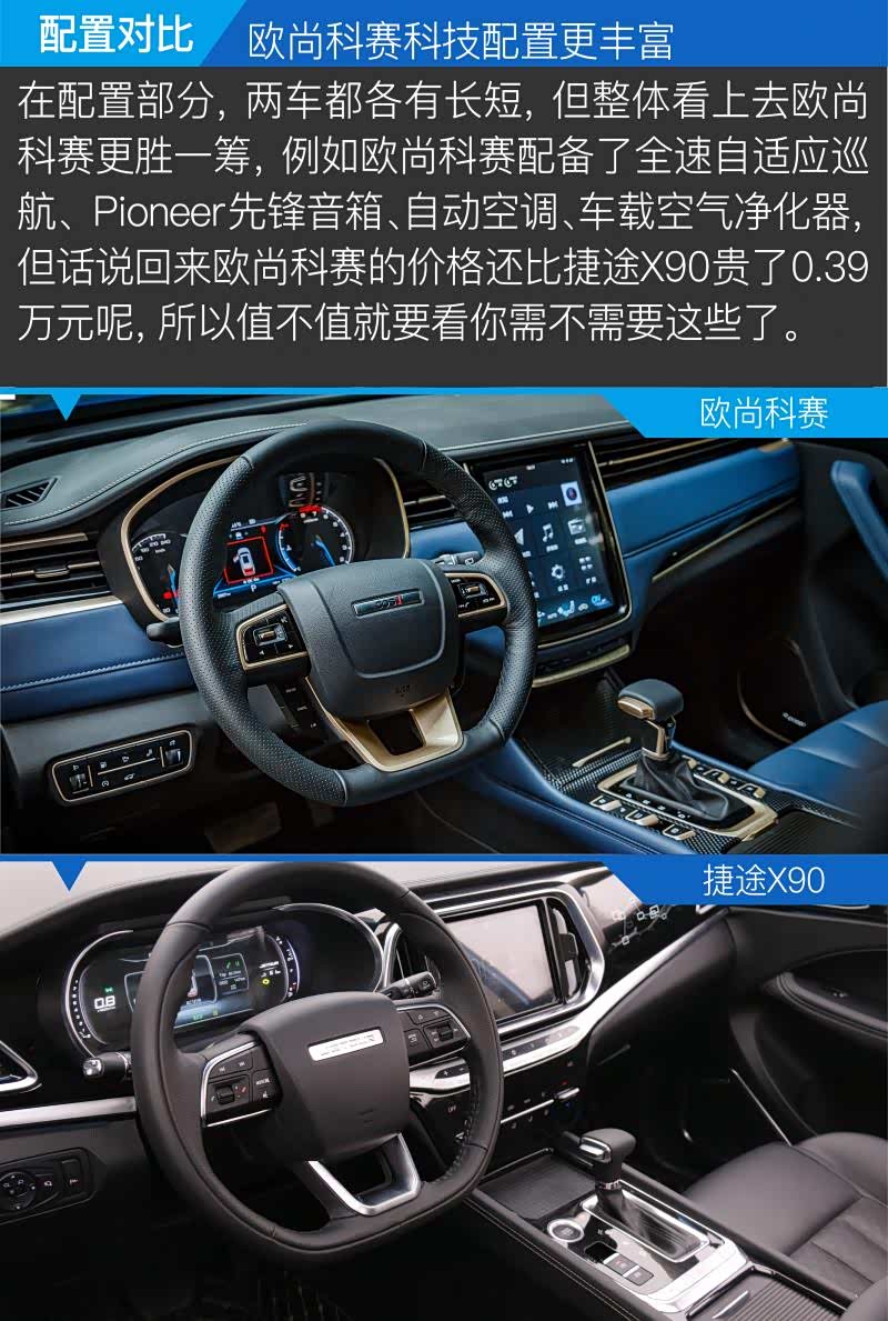 总结:两款车都各有优势,欧尚科赛有更具豪华感的内饰以及实用的科技配置,捷途X90拥有更大的车身尺寸和更宽泛的动力选择,至于你更想要哪一款车型,相比现在已经有了答案。
