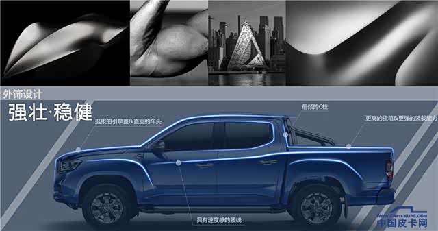 中国的汽车设计曾经饱受诟病,早期的皮卡产品处处显露出模仿国际品牌的嫌疑,2012年以前,大街小巷中为数不多的皮卡全长一个样,从外看大同小异,从内看相差无几,国产皮卡靠着一套模具走天下,内饰外观同质化严重。