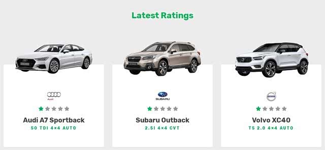 其中,拿到5星的只有两辆新能源汽车,分别是宝马i3和现代 Ioniq(参数|询价);直接被评为0星的也有,包括大众高尔夫,菲亚特熊猫和福特嘉年华(老款)。介于0至5星之间的,大众Up! GTI获4星,宝马X1和奔驰A200获得了3星,新款福特嘉年华被评为2星,而奥迪A7、沃尔沃XC40和斯巴鲁傲虎仅得1星。