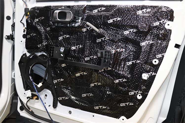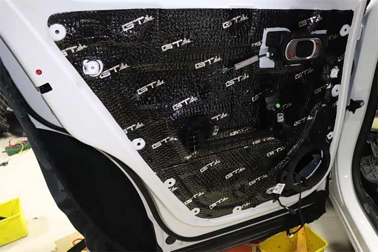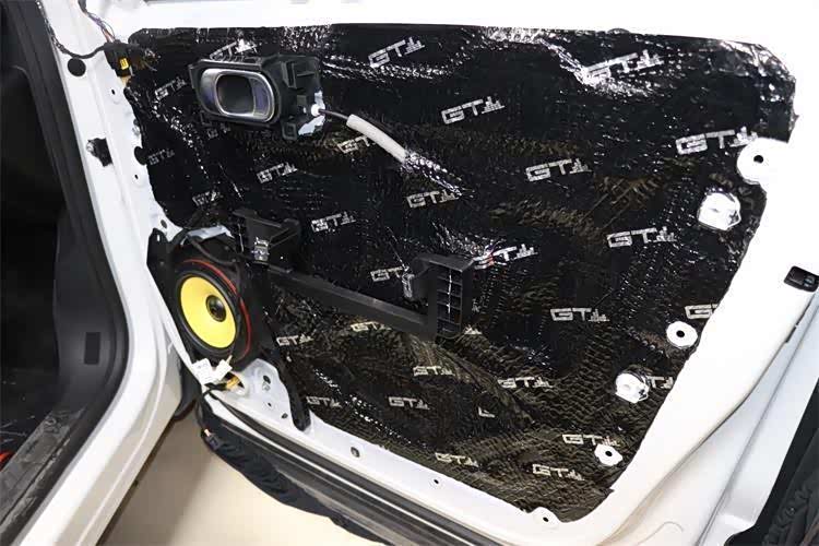 第二层GT隔音,使用隔音材料把车门密封起来,形成一个密闭的箱体,起到类似音箱的作用,有效帮助音响音质充分的发挥。
