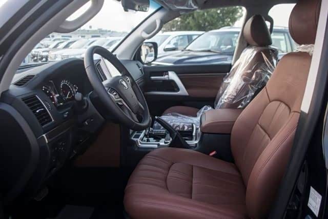 原装带有大屏导航和360°全方位影像,ACC雷达测距系统按钮就在方向盘的右侧,在变速器旁的面板是兰德酷路泽5700的越野核心总成配置的控制区,此车带有底盘升降,驾驶模式调节,高低速四驱调节,蠕行模式调节,二挡起步,坡道辅助,中央差速锁,坦克路面行驶,坦克调头,弯道辅助,车身电子稳定等配置,有了这些配置加上非承载式车身以及5.7V8发动机的强劲动力和8速手自一体变速器的匹配,可以使这台兰德酷路泽5700达到最强悍的越野极限。