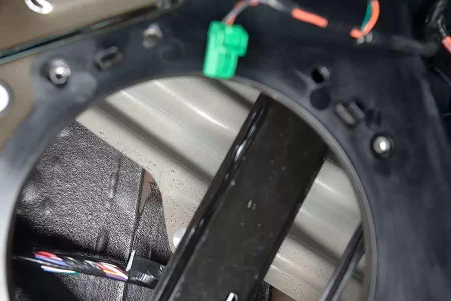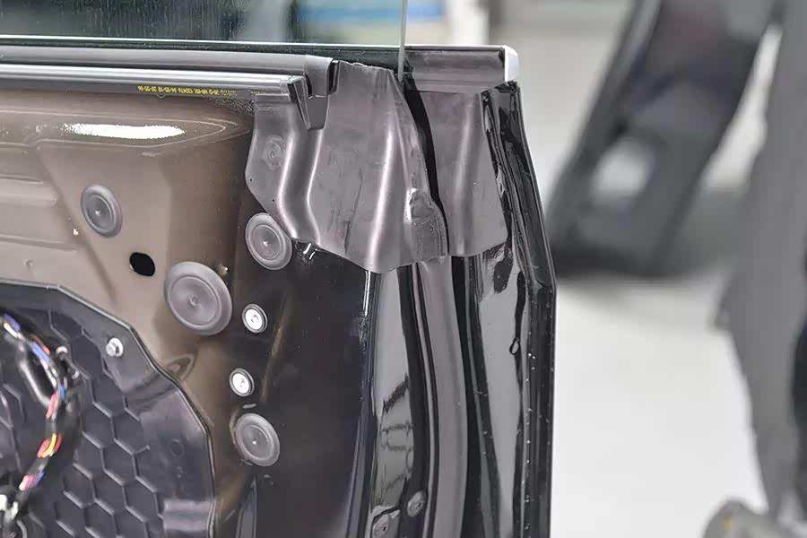 拆掉门板能看到车门采用一体式塑料密封板,上面装有气压式碰撞传感器。在侧面碰撞时,侧气囊的响应速度会更快,准确度也更高,传统大厂的新车型几乎都采用了这种结构。