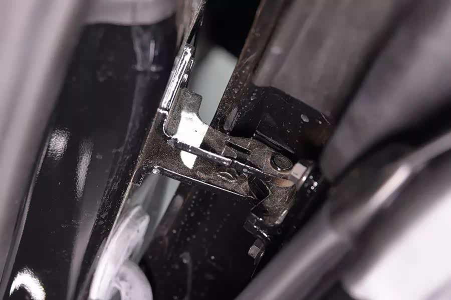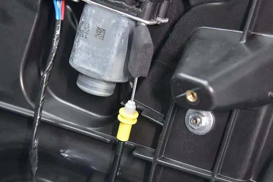 后门只有电子解锁开关,没有物理解锁装置。拆掉后门内板,发现里面实际是有物理解锁拉线的,但并没有安装,只留了一个线头,手动开关被阉割掉了。