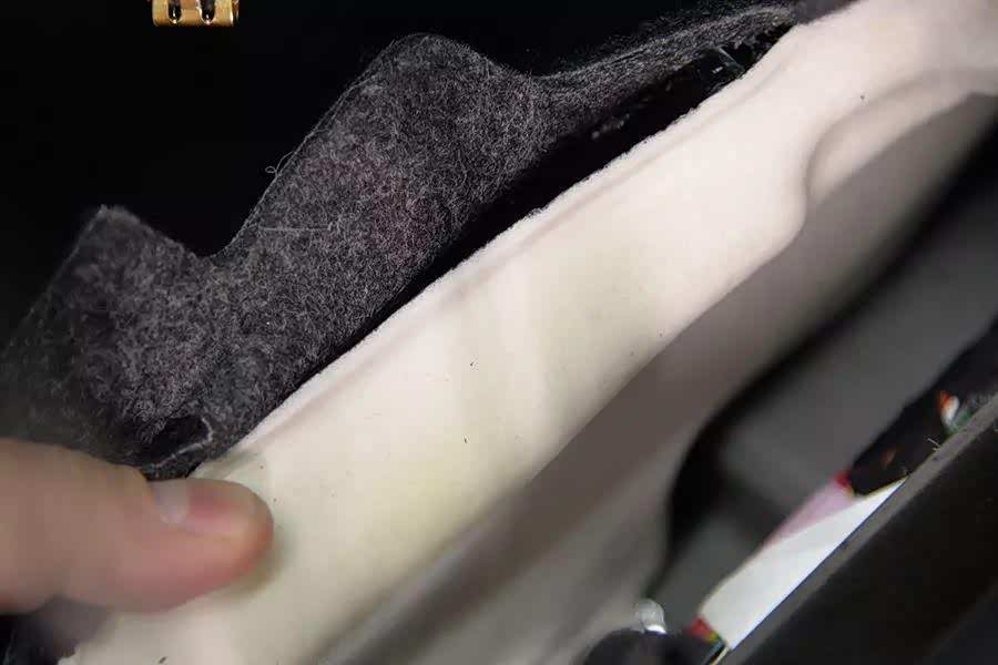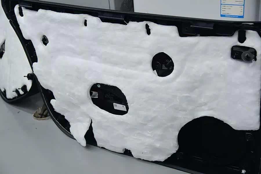 车门内饰板上的隔音棉也不再是以往大面积的回收棉,而变成了白花花的原生棉。