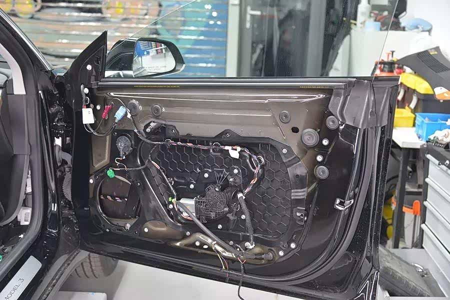 另外,我们比较欣喜的看到,Model 3的车门孔洞密封,使用了相当规矩的橡胶密封垫,而不像之前Model S、Model X那样,膏药似的丁基胶止震板粘贴,记得在拆这两款车时,我们曾经吐槽过这一点,在新的Model3已经改正过来了,还是值得称赞的。