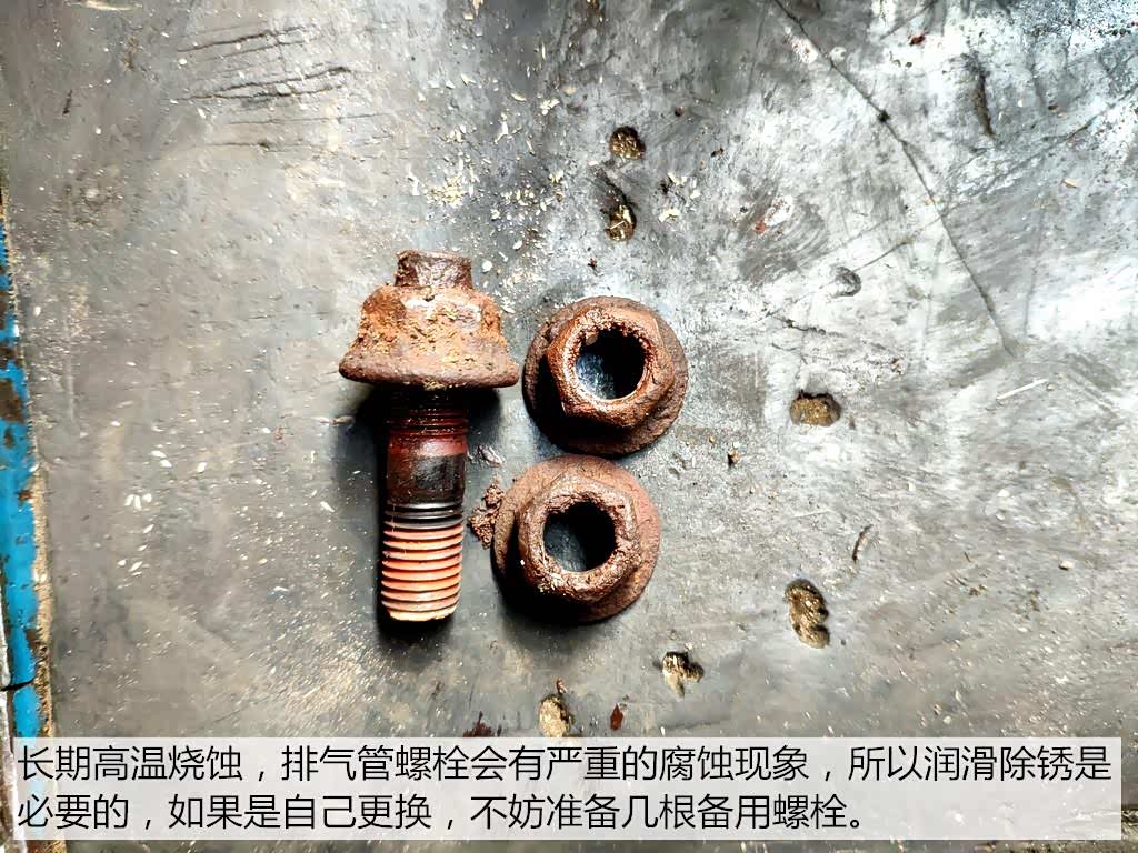 3、更换排气管垫很简单,常备“除锈润滑剂”。