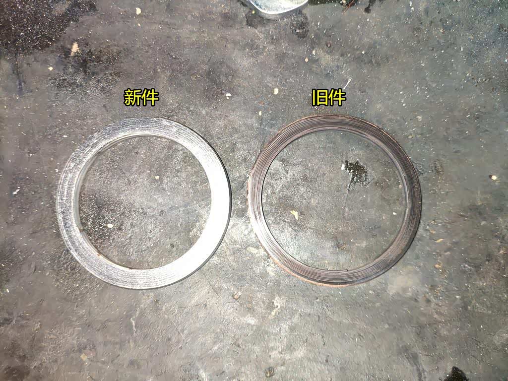 从图片可以看到,受挤压和高温影响,旧排气管接口垫已经出现了变形变薄的情况,这将会导致排气管接口出现漏气情况。