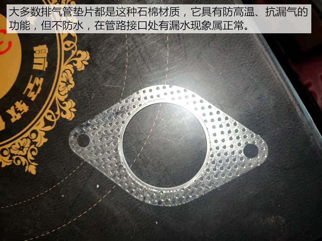 上面说过,排气管接口垫并没有良好的防水性能,只要接口处不漏气和异响,漏水也属正常现象,无需处理。