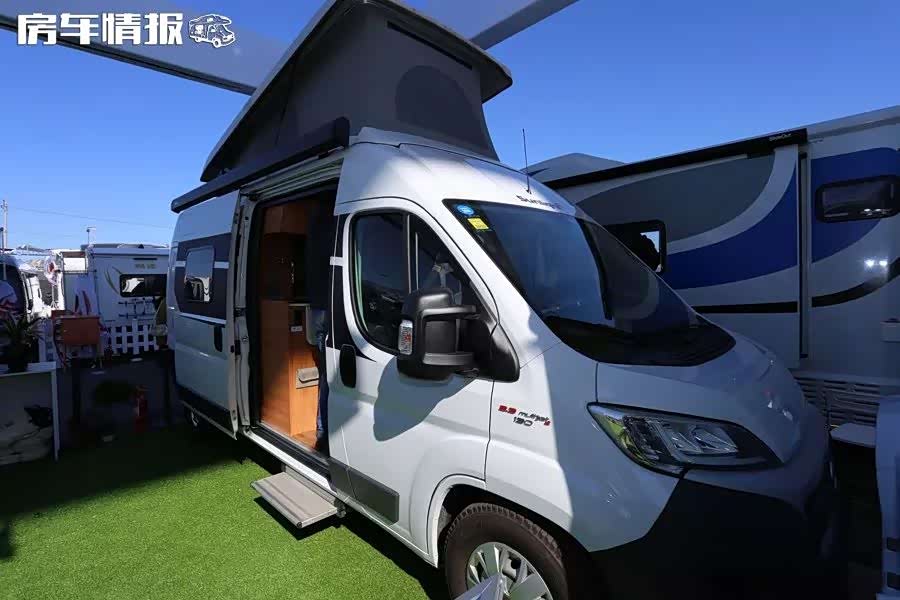 从外形上看,这是一辆B型房车带有升降顶设计,整体上采用的是白色金属车身,经典的黑白搭配给人一种简约大气的感觉,整车的外形尺寸为5998*2080*2780mm,整备质量为2930kg,内部核载人数达4人,六米以内的车身满足蓝牌C本的驾驶需求。