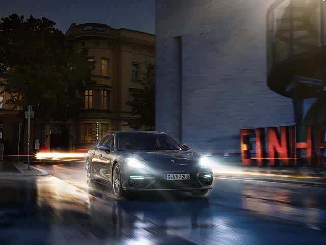 经过,将近十年的市场洗礼,Panamera已经发展到了第二代车型,新款Panamera与2017年正是上市。在外观方面,Panamera秉承着上一代圆润、协调的车身轮廓。轴距币上一代加长了3cm,前悬缩短而后悬加长,整体更具年轻活力。同时雕塑感更强的侧面线条刻画出强有力的肌肉感。前脸标配4点式LED主大灯引人注目。而尾部贯穿式尾灯则使它更具辨识度 (按照以往来讲,911是保时捷的灵魂车型,保时捷其他车型后续设计灵感都追随911,但现在来看这种情况已经改变,保时捷现在的改款车型则都延续了Panamera贯穿式尾灯的设计)