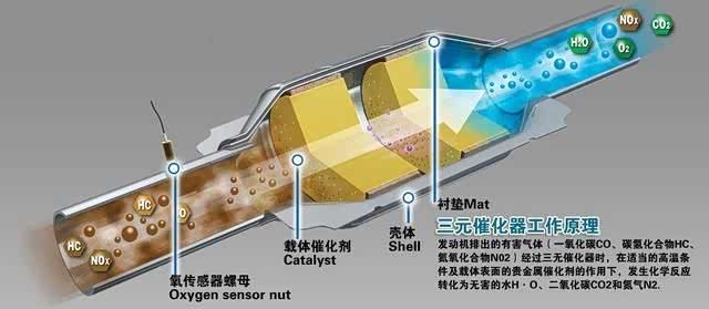 三元催化剂中含有多种贵金属,如铂、钯、铑等。它们的作用是氧化氮氧化物、颗粒物,并排放合格的气体。