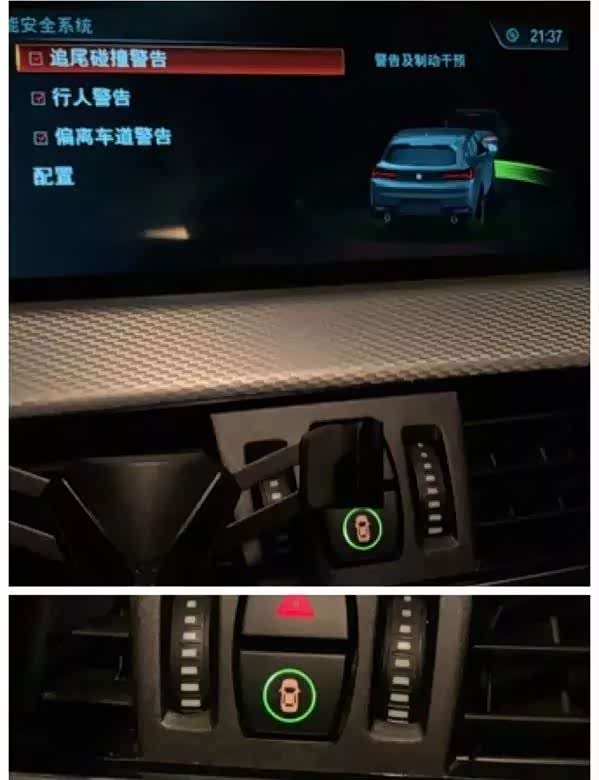 我这台X2在购买时选装了“驾驶辅助”系统。这是宝马提供的一套主动安全系统。X2的驾驶辅助系统提供了三种功能:追尾碰撞警告、行人警告及偏离车道警告。