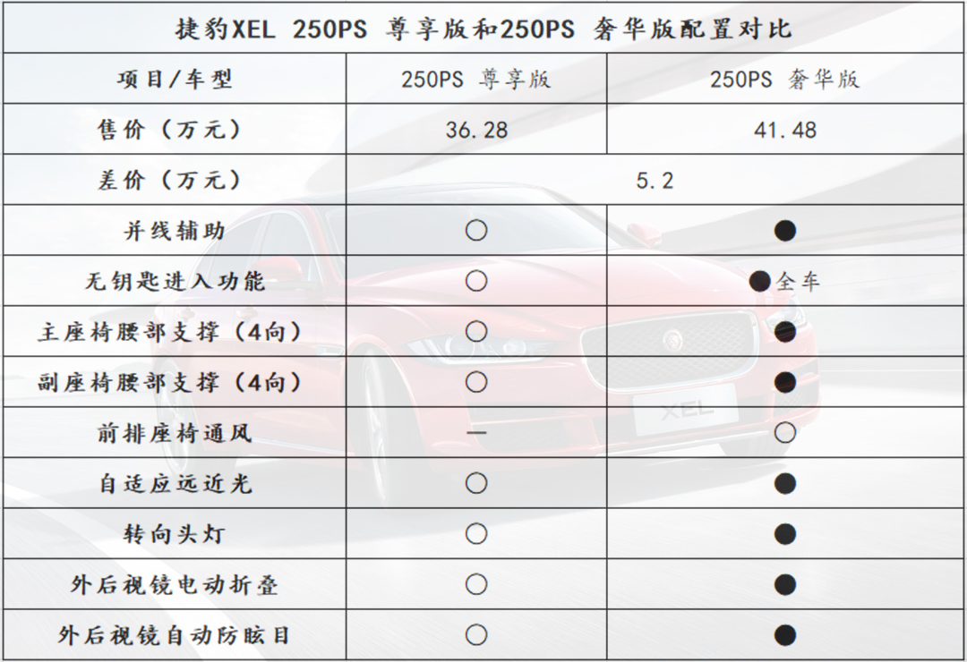 了解完捷豹XEL的实力之后,如果你已经动了选择它的念头,我想你会疑问怎么选才是最划得来的选择,19款捷豹XEL在去年11月就已然上市,其共计推出了5款车型,售价区间为28.18-41.48万元,接下来我们就对每一款车型进行配置分析,帮你选出最值得配置车型。