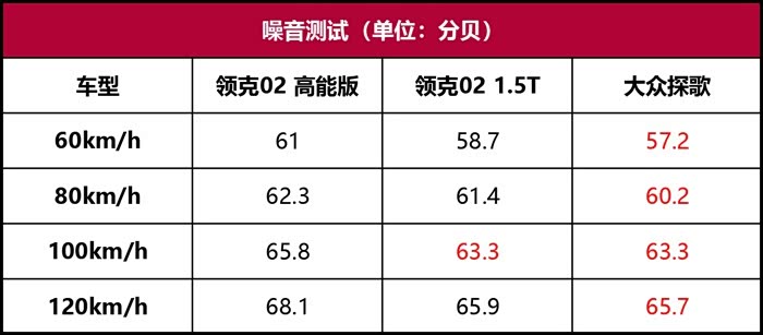 其次由于领克02高能版采用马牌防爆轮胎,其胎壁更硬,高速行驶过程中对于路面极为敏感。所以相比于1.5T版本,它每个速度区间都要吵上一个分贝。所以领克02高能版虽然拥有更稳定可靠的轮胎,但是也牺牲了一定的隔音性能。这也是为什么我们经常建议想改善隔音及刹车的网友,换一套好轮胎是最简单粗暴的做法。