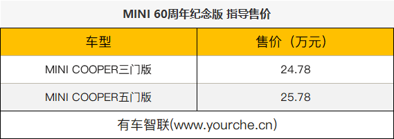 MINI 60周年纪念版车型上市 起售价24.78万元