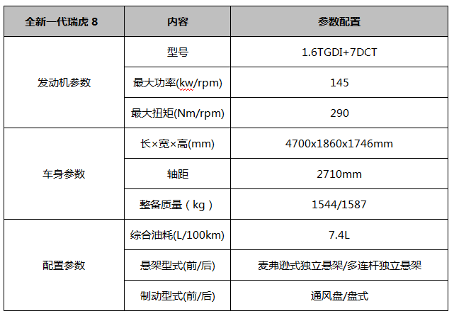 这个数据的意义,相当于少了一个成年人,在动力性和经济性上来说,瑞虎8先天性具有自然的优势。