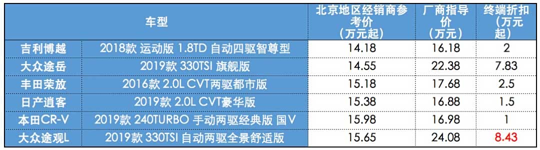 途岳和途观L的终端折扣就显得非常有诚意了,不得不说,还是大众懂中国市场啊……途观L最近的折扣力度也是更大,而它作为今天唯一一台定位中型SUV的车型,绝对适合注重空间实用性的二胎家庭,在油耗方面也控制得不错,这两个大优点一出,就决定了途观L的热门程度了。