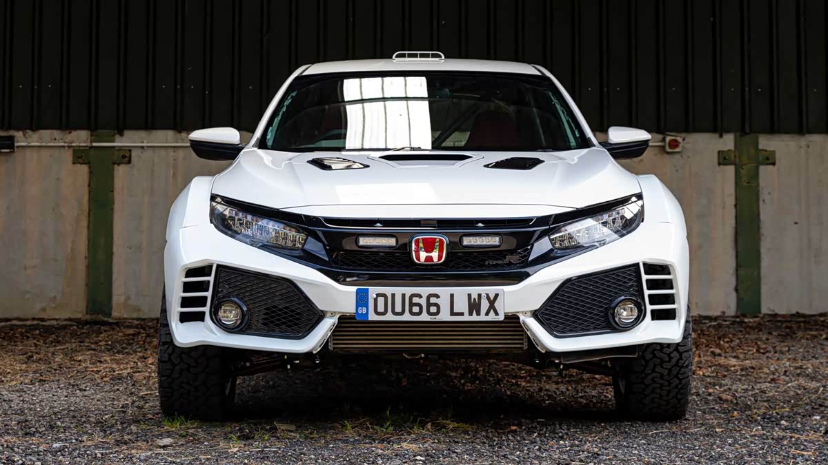 这辆疯狂的越野版 Civic Type R 是英国改装厂 Ralph Hosier Engineering 的作品,与原装车相比最霸气的区别莫过于升高了4寸的车身离地高度,并且换上了粗旷的 BFGoodrich 越野胎,为了能够容纳这套255/55/18尺寸的轮胎因此前后轮拱也必须大幅加宽变身爆龟式样,而后轴还换上定制的拖曳臂以及侧拉杆,直接变身拉力版日系钢炮!相比之下其它专注在动力改装的FK8简直如凡夫俗子般普通。
