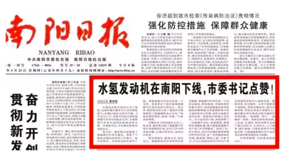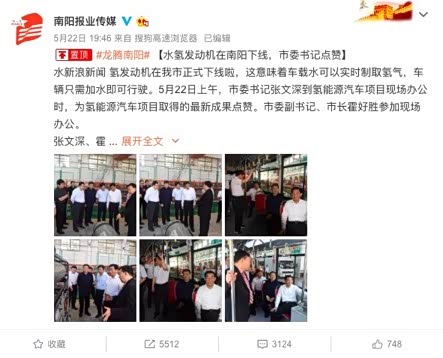 5月23日,据《南阳日报》报道,水氢发动机在河南省南阳市正式下线,意味着车载着水就可以实时制取氢气,“车辆只需加水即可行驶”,这预计会给南阳带来300亿元产值。消息一出,庞青年迅速被推上风口浪尖。