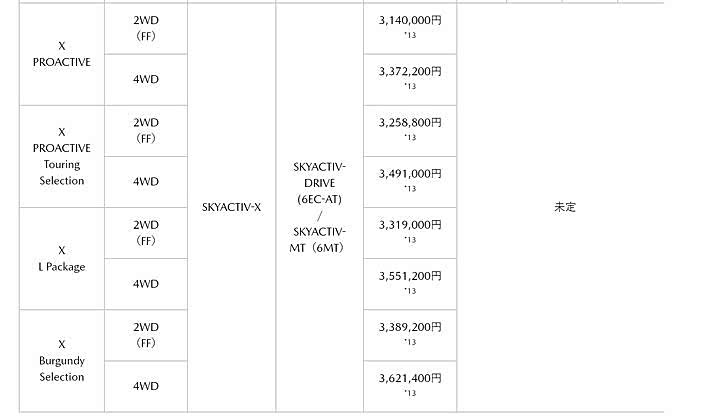 而若以 Skyactiv-X 入门的「X PROACTIVE」车型、与 2.0 升汽油入门的「20S PROACTIVE」售价对照,分别为 314 万、以及 247 万日圆,折合人民币分别为 20 万、15.7 万,价差则为人民币约 4.3 万。「X PROACTIVE」车型的售价,甚至比起日规Mazda6 Wagon「20S PROACTIVE」等级的 2,959,200 日圆(约合人民币 18.8 万元)更高。