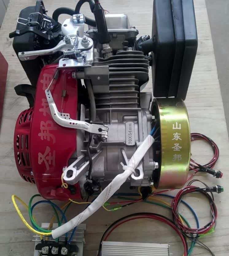 这种为自动油门控制,是通过启动器来控制油门大小,这种增程器启动器需专车专用{60伏为60伏72伏为72伏,不能混装}