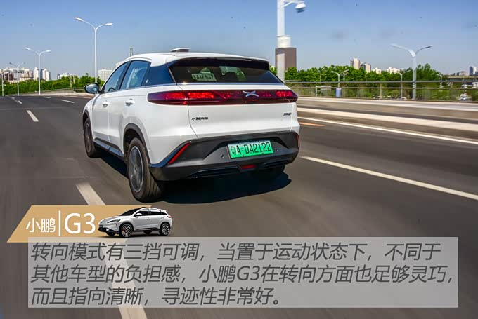 驾驶模式有经济、标准、运动三种可选,方向盘阻尼也有三种不同档位可选,动能回收方式同样有高中低三个选项,这样一来自由搭配程度就比较灵活,可以满足多种不同的需求。笔者在试过这几种模式的不同搭配以后,选择了运动+轻柔+动能回收中的方式,这也是笔者认为最适合自己的驾驶方式,在这个模式下驾驶感受和能量回收的经济型都能够有所保证。当然了我们也知道在传统电动车型在能量回收等级比较高的时候,电门踏板相当于有加速和制动两种功能,松开电门踏板,相当于电动机进行一个反转,通过能量回收来对车速进行一个制动,其实这个感受是非常不舒服的。但是在小鹏G3上真正能够做到能量回收低等级顺,高等级缓的状态,所以驾驶感受十分不错。