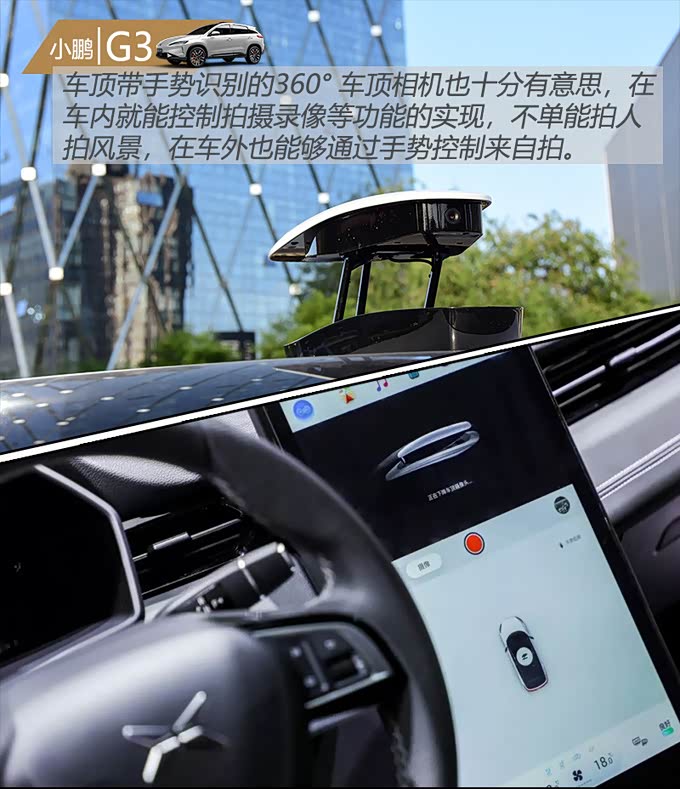 也可以通过车内的中控屏幕控制车顶带手势识别的360° 车顶相机”的升起和回位,在中控屏幕控制方向并拍照,也可以身处车外,用手势来控制拍照,所拍摄的照片可以通过车载Wi-Fi实时分享给好朋友。