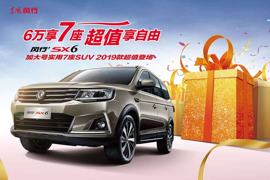 风行SX6凭借其超高性价比和全面产品力,为消费者解决经济压力的同时又提供实用可靠的用车生活。SX6全新的购车政策,满足家人及自己对车的需求,让全家能够有好的心情一起感受生活的美好。