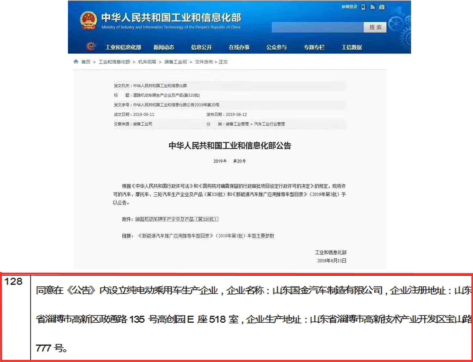 6月12日,工信部发布了第320批《道路机动车辆生产企业及产品公告》公示,在新增汽车生产企业清单一栏中,山东国金汽车制造有限公司(简称“国金汽车”)赫然在列,这意味着,在今年山东省发改委公告国金汽车建设项目获得批准,国金汽车作为独立的新能源乘用车生产企业,正式获得工信部核准的纯电动乘用车生产资质,成为山东省首个获得国家《道路机动车辆及生产企业公告》独立资质的新能源乘用车企业,实现山东省本地新能源乘用车企业零的突破。