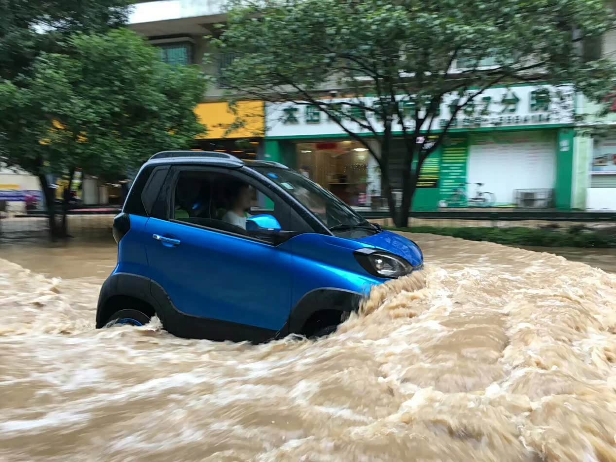 别看这辆宝骏E100车身小,司机胆子还挺大,漫到小腿的水路也没在怕的,一路淌水直行叫人目瞪口呆。重点是,涉水而行的小E一点事都没有。为什么宝骏E100可以如此任性?