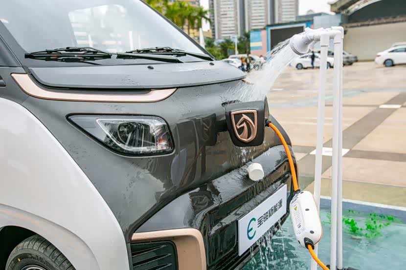 在宝骏小E的很多路演展示中,鱼缸泡电池,水淋充电头都是拿手好戏,所以,不管是涉水通行,还是在雨中充电,小E都是没有问题的。