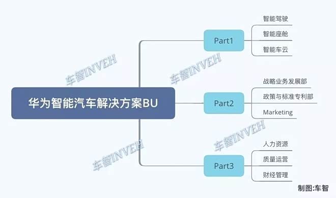 6月11日,华为发文确定了智能汽车解决方案BU的组织架构,下面是华为智能汽车解决方案BU的部门划分: