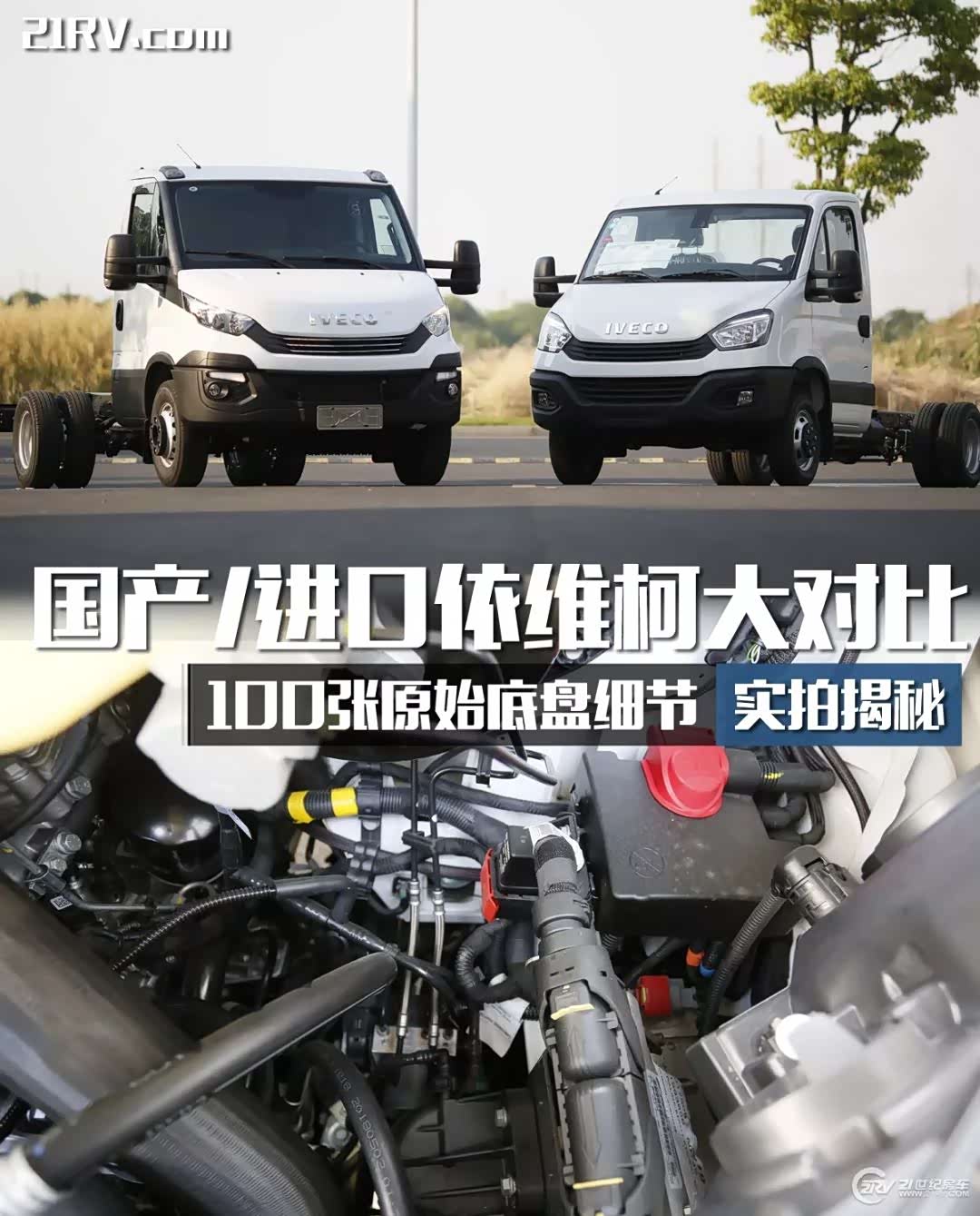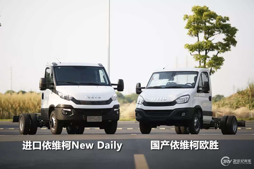 然而随着国产依维柯的更新换代,底盘代号AD02的依维柯欧胜登场了,新增8AT手自一体变速箱车型的消息让欧胜瞬间成为热点,加上与大哥依维柯New Daily相近的外观设计,甚至让不少消费者以为欧胜是New Daily的国产版本。平常我们能见到的基本都已经是成品C型房车,底盘部分已经完全被房车的箱体遮挡;所以今天我们特意找到了两台最原始状态的底盘,也就是刚刚提及的国产依维柯欧胜和进口依维柯New Daily。