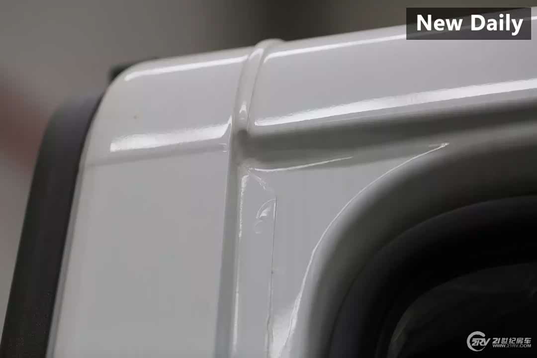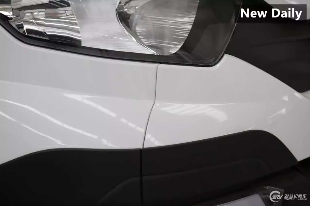 接下来对比下两车在车身覆盖件的装配细节,欧胜前大灯下方翼子板处的缝隙稍有些不均匀,New Daily车身覆盖件之间的缝隙间距则较为均匀,这也能体现出两者在车身覆盖件上的加工精度及装配水平。