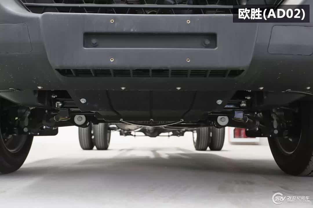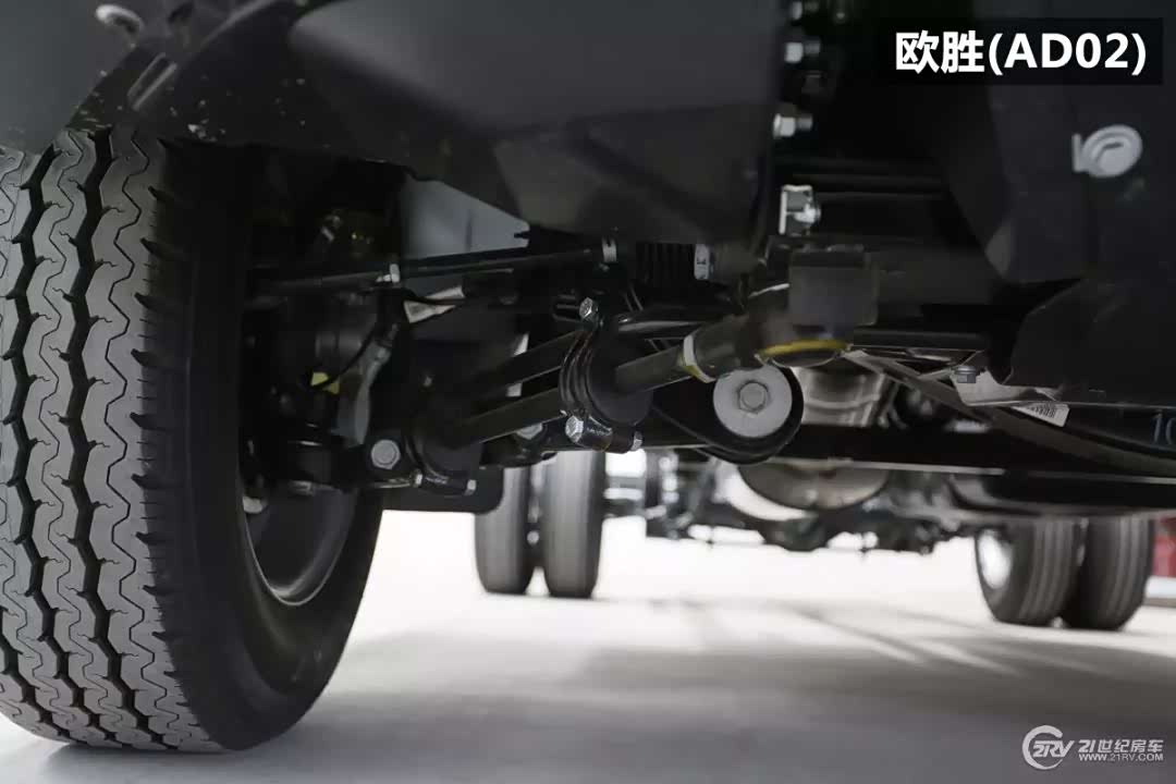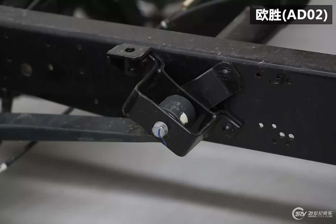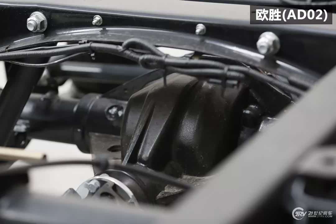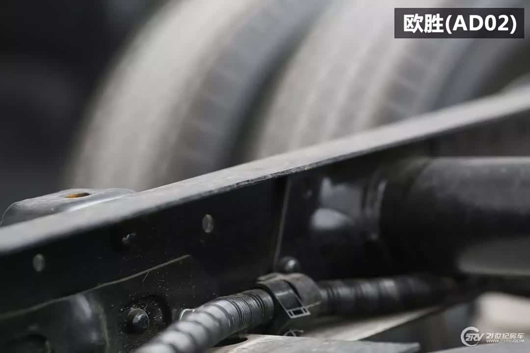 两车后桥悬架均带有钢板弹簧结构,而在钢板弹簧两侧的支架处,欧胜的支架结构明显就要单薄许多了。