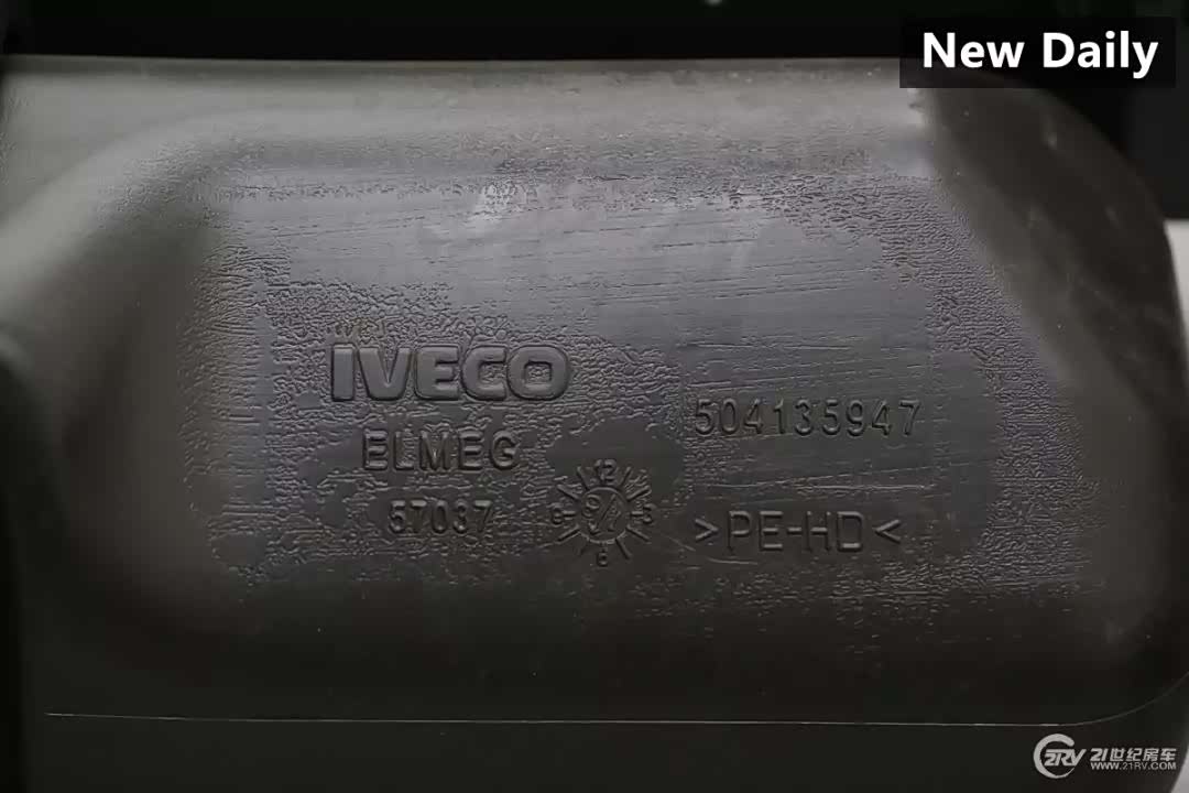 欧胜与New Daily的油箱无明显区别,不同的是New Daily的油箱外侧带有IVECO标识,PE-HD标识代表着油箱材质为高密度聚乙烯塑料。