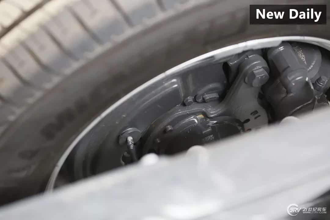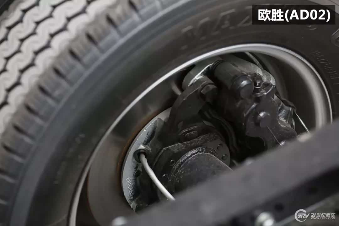 上图为两车的刹车盘内侧,可见欧胜的刹车盘是裸露的,而New Daily则配备了刹车盘挡板,可起到防止车辆行驶中石子,沙泥等异物进入刹车盘影响车辆行驶安全的作用。