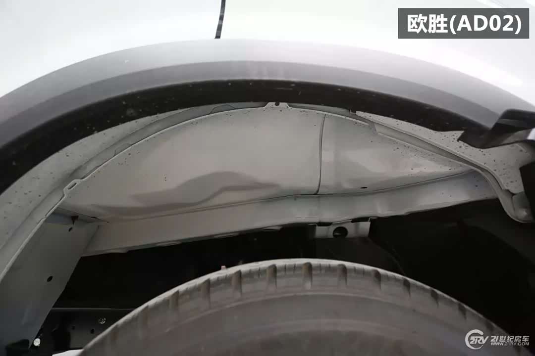 底盘装甲的学名是汽车底盘防撞防锈隔音底漆,是一种粘附性橡胶沥青涂层。喷涂在车辆底盘快速干燥后形成一层牢固的弹性保护层,可防止飞石和沙砾的撞击,避免潮气、酸雨、盐分对车辆底盘金属的侵蚀,同时还具有一定的隔音效果。从欧胜和New Daily的轮拱内侧就可观察到底盘装甲涂层,New Daily的底盘装甲涂层较厚实,欧胜则要单薄许多以至于在照片上甚至看不出涂层。