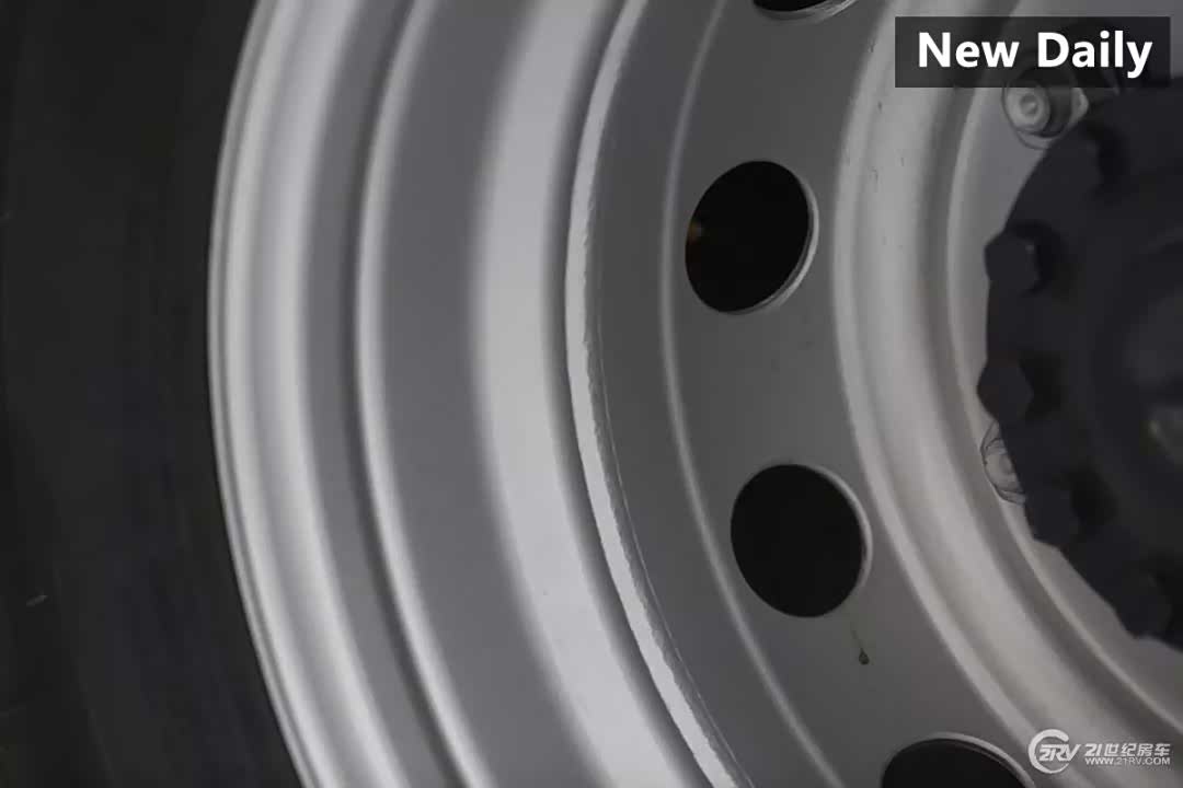 欧胜和New Daily的轮毂与家用轿车不同,其轮毂与挡圈通过焊接固定,从上图轮毂细节实拍可见,欧胜的轮毂与挡圈之间为部分焊接,而New Daily则为完全焊接,轮毂与挡圈之前没有缝隙。