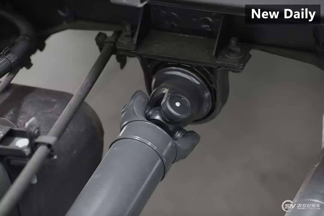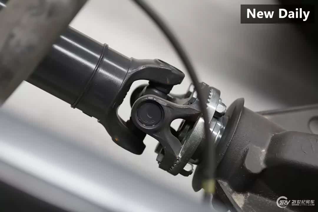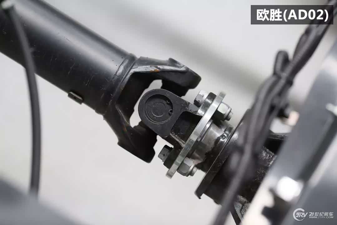 由于两车均为后轮驱动,所以在底盘中央可以看到粗壮的传动轴,将发动机的动力传递到后轮。上图为传动轴的万向节结构,不难看出在结构设计和做工方面,欧胜与New Daily均存在着不同。
