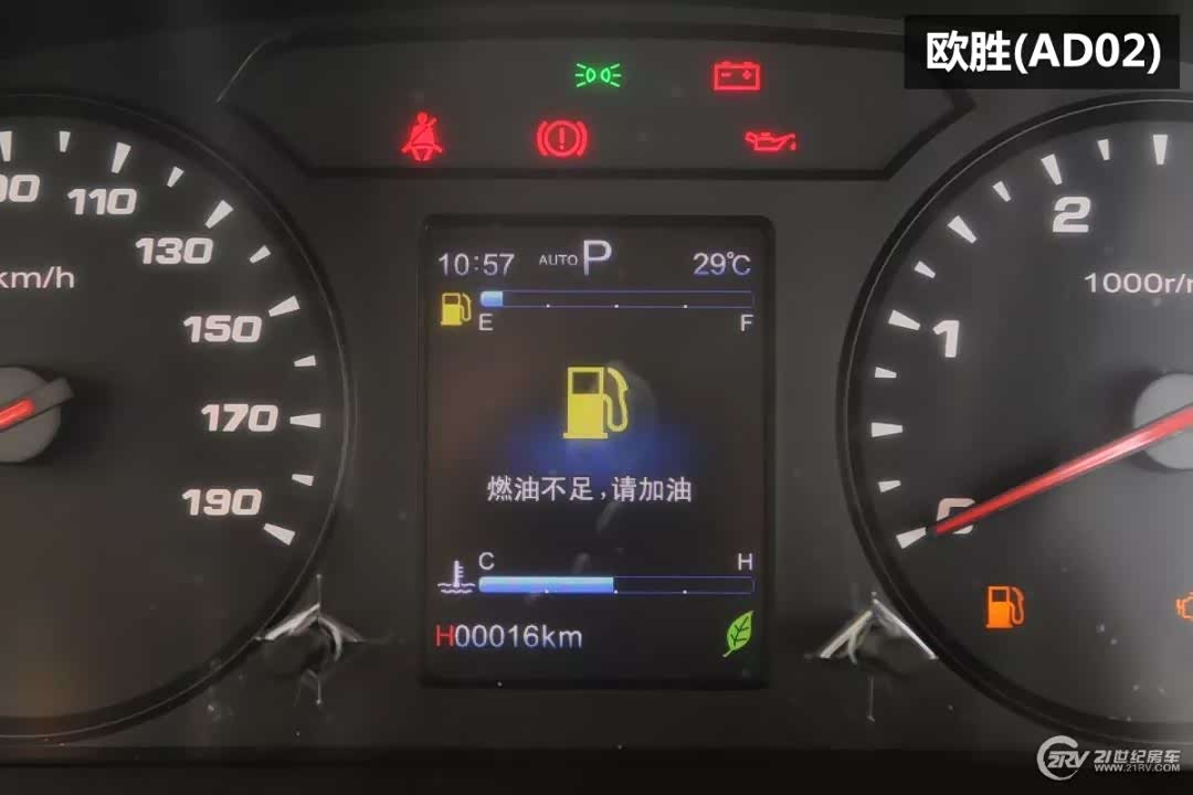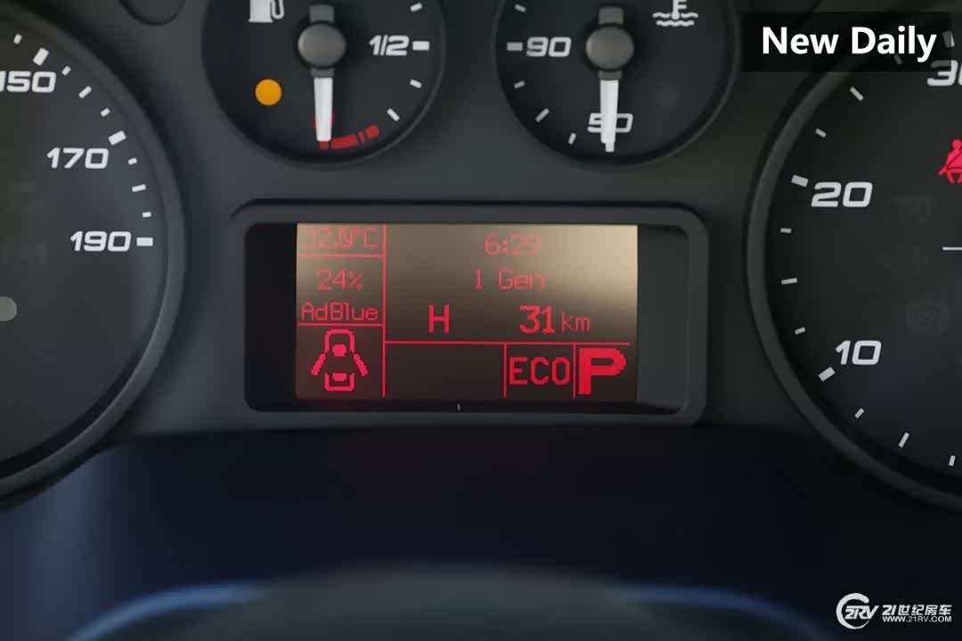 两车均采用机械式仪表盘,并配备了行车显示屏,包含挡位显示、动力模式、时间、车外温度及尿素剩余量等信息,不同的是欧胜配备的是彩色液晶屏,New Daily则采用单色液晶屏。