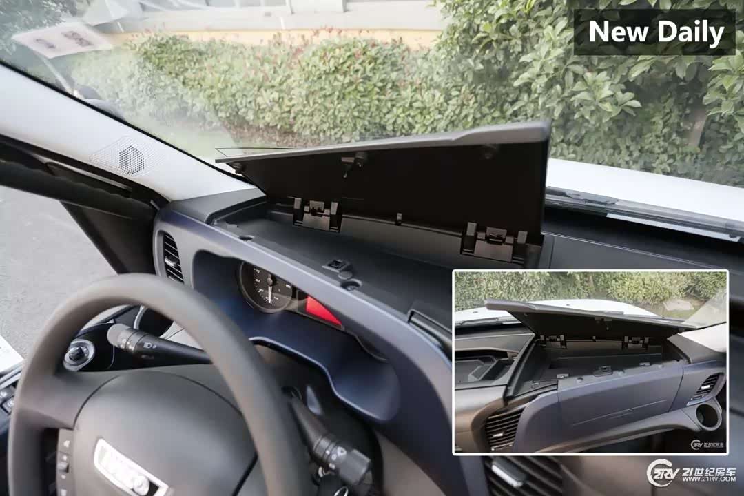 储物空间上,New Daily相比欧胜有着更多驾驶室储物空间,仪表台两侧都隐藏了空间可观的储物空间,方便放置杂物。