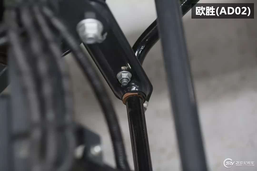 两车悬挂均带有防倾杆,但在防倾杆的连杆结合处稍有区别。