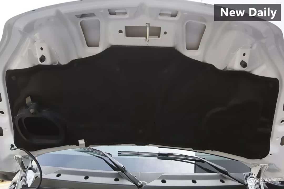 再看机舱上方的发动机盖内侧就能发现不同了,New Daily发动机盖内侧上的这块黑色包裹材质叫做隔热/隔音棉,正如名字一样,它具有良好的隔音隔热及阻燃效果,能有效避免发动机的高温直接传递到发动机盖,以此保护发动机盖表面车漆延缓老化,同时避免雨天时发动机盖产生雾气影响视线。除此之外,隔热棉在冬季时可以避免机舱内温度快速流失,从而减少短时间内再次启动时对发动机造成的损伤。