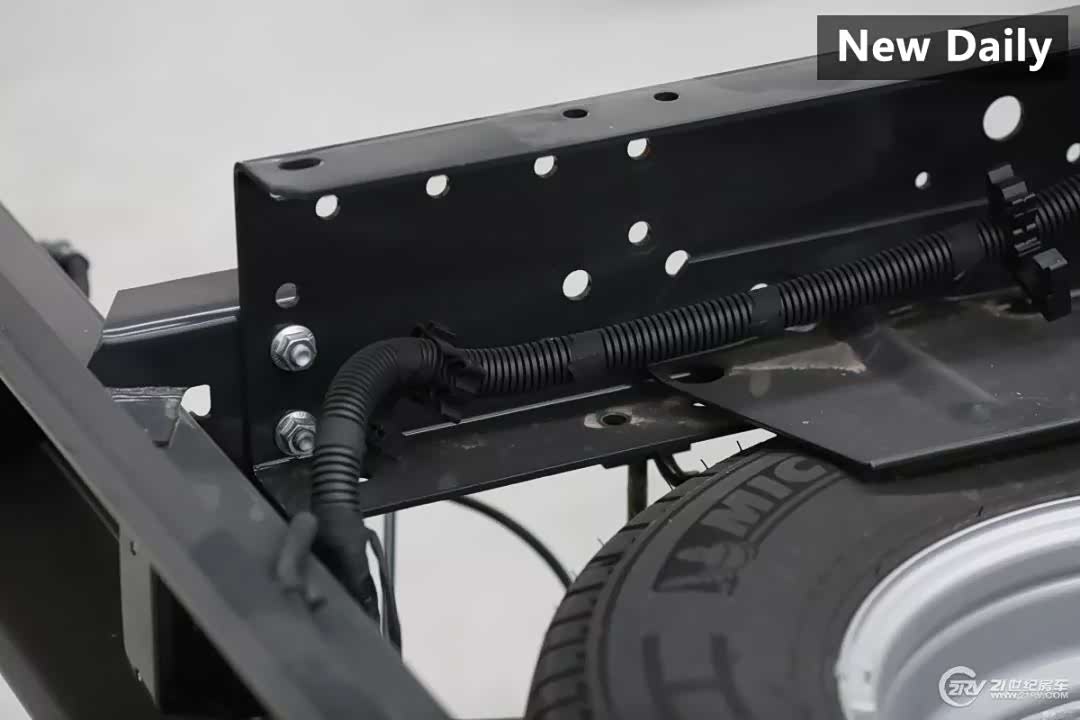 汽车线束带有专门的固定卡扣,使线束能够稳定地固定在底盘上,相比之下New Daily使用的线束卡扣用料厚实,更加可靠耐用。