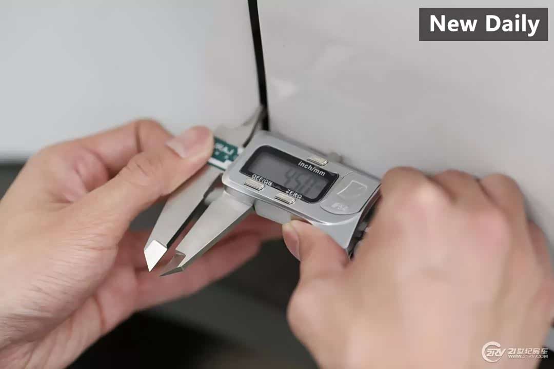 对比车门与翼子板之间的缝隙,取翼子板与门板缝隙均匀处测量,欧胜的翼子板与门板间隙为6.33mm,New Daily的翼子板与门板间隙为4.5mm。
