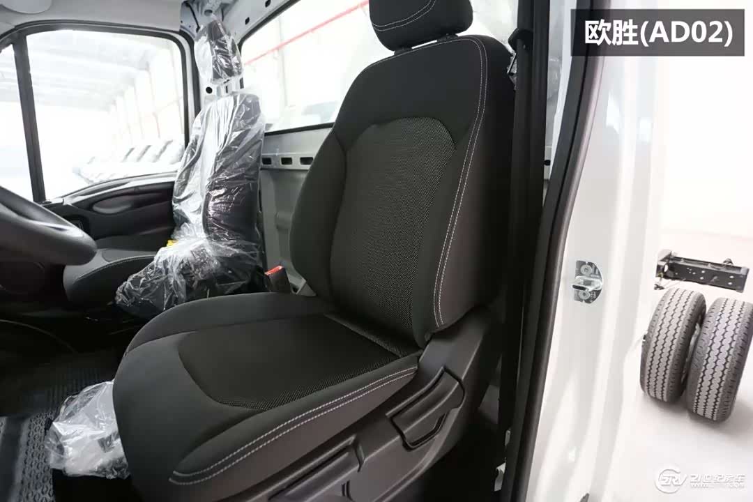 两车驾驶舱座椅均采用织布材质包覆,区别在于New Daily座椅头枕采用镂空搪塑骨架设计,碰撞时对头部保护优秀,镂空设计减轻了重量,颇具运动化氛围。