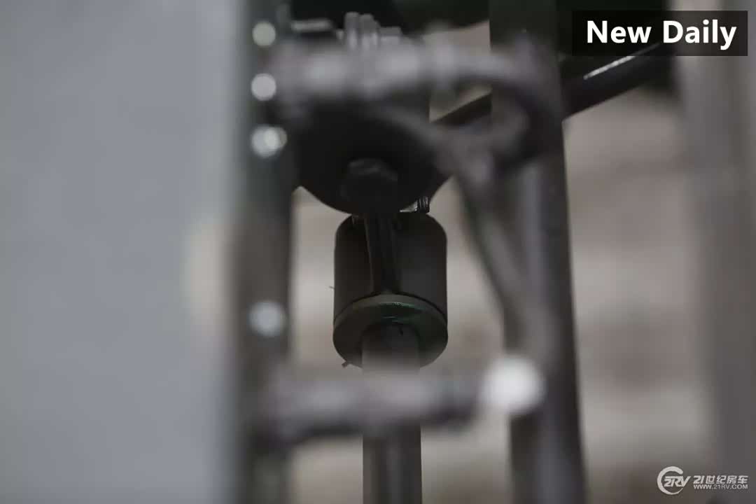 欧胜和New Daily的前悬架结构一致,同为扭力杆前悬,但New Daily的悬架连杆要更加粗壮一些。