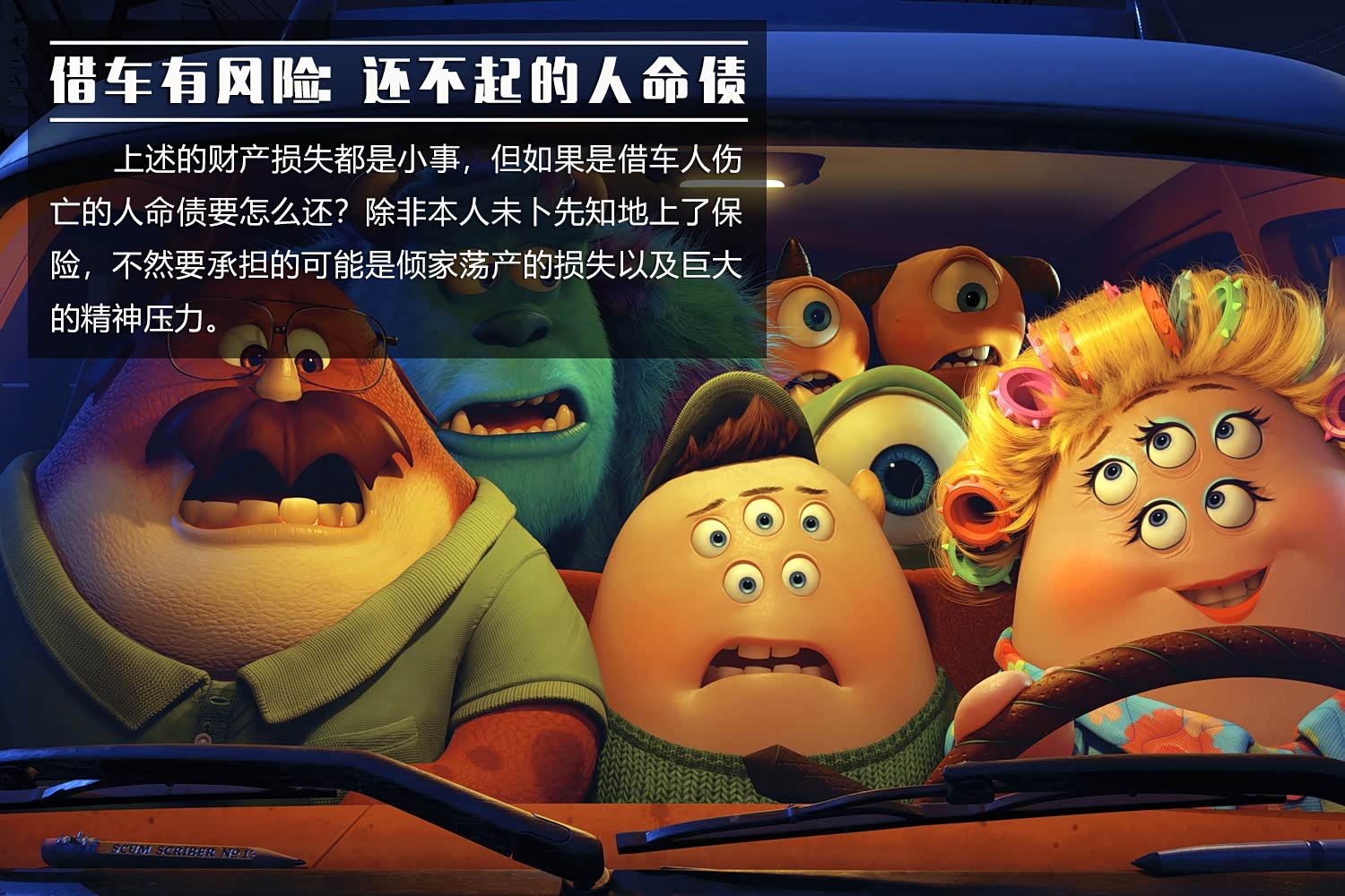 3 还不起的人命债 上述的财产损失都是小事,但如果是因为借车导致借车人伤亡的人命债要怎么还?除非本人未卜先知的上了保险,不然要承担的可能是倾家荡产的损失以及巨大的精神压力。