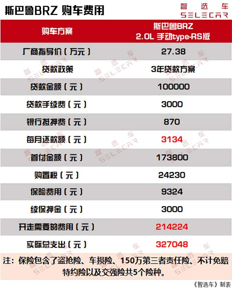 时隔半年,我终于等来了属于自己的这台2020款 2.0L手动type-RS版白色斯巴鲁BRZ。不过提车后喜悦之余,自己也产生了一些担忧。买下这辆BRZ,或多或少都有着冲动消费的因素在里面,购车除了花光工作以来的全部积蓄还问家人拉了一笔赞助,那么之后我真的养得起它吗?因此,今天我也详细总结了斯巴鲁BRZ的购车费用以及日后的用车、养车成本,算是为自己也是为车友们作一个参考。